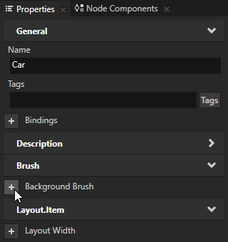 When you drag a property from Properties and drop it to a node in the Project, Kanzi Studio adds that property and its value to that node.