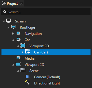 - In the Project press Alt and right-click the Car node and select Viewport 2D.