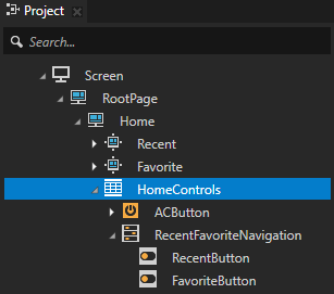 - The HomeControls node positions the buttons users use to navigate between the Recent, Favorite, and AirCondition on the Home application screen.