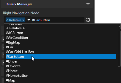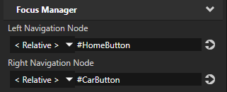 - In the Project > RootPage > > Grid Layout 2D select the HomeButton node, in the Properties right-click, select Add Property > Focus Manager > , and set it to #MediaButton.