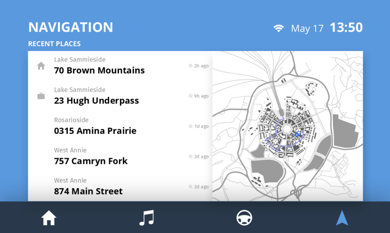 In this step of the tutorial you create keyboard navigation between the Home, Media, Car, and application screens. You set focus to the toggle buttons on the navigation bar and set the application to navigate between the application screens when the user presses the → (Right Arrow) and ← (Left Arrow) keyboard keys.