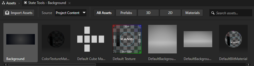 - In the Assets click Import Assets, go to the <KanziWorkspace>/Tutorials/Multi-project/Assets/Images directory, select the Background.png image, and click Open.