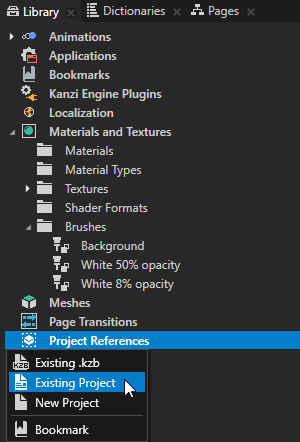- In the Library press Alt and right-click Project References, select Existing Project, and select the <KanziWorkspace>/Tutorials/Multi-project/Assets/Stats/Stats.kzproj project.