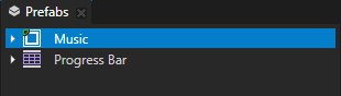 - In the project tab bar select the Music project, in the Prefabs > Music prefab select the Progress Bar node, in the Properties next to the Progress property click