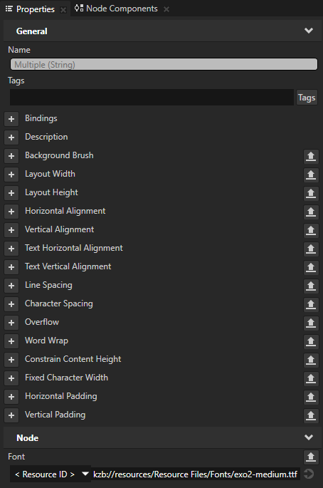 - In the Prefabs select the Song and Artist nodes, and in the Properties set the Font property to the Exo 2 Medium font of the Resources project.