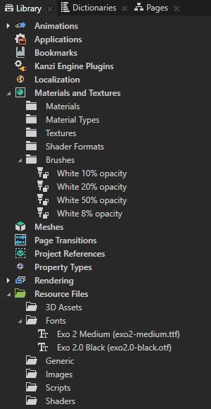 When your Kanzi application consists of several Kanzi Studio projects, use a dedicated project which contains only the resources used across these projects. For example, in such resource project you can store fonts, brushes, styles, and images which you want to use in more than one Kanzi Studio project of your Kanzi application.