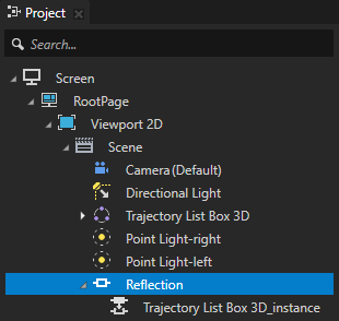 This project contains a Trajectory List Box 3D node with several 3D models and lights. In this tutorial you create the reflection of these nodes.