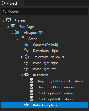 For example, in the Project select the Directional Light, Trajectory List Box 3D, and both Point Light nodes.