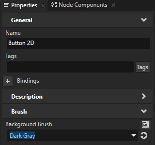 - In the Project select the 2D node that you want to fill with the brush you created, in the Properties add the Background Brush or the Foreground Brush property, and select the brush you created in the first step.