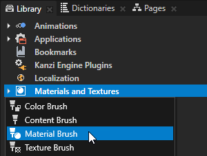 - In the Library press Alt and right-click Materials and Textures, select Material Brush, and name the brush.