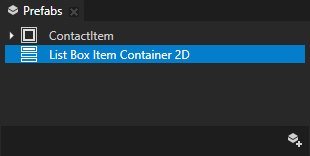 - In the Prefabs select the List Box Item Container 2D, in the Properties add the Background Brush property, and set it to NotSelectedItemBackground. In the State Tools click