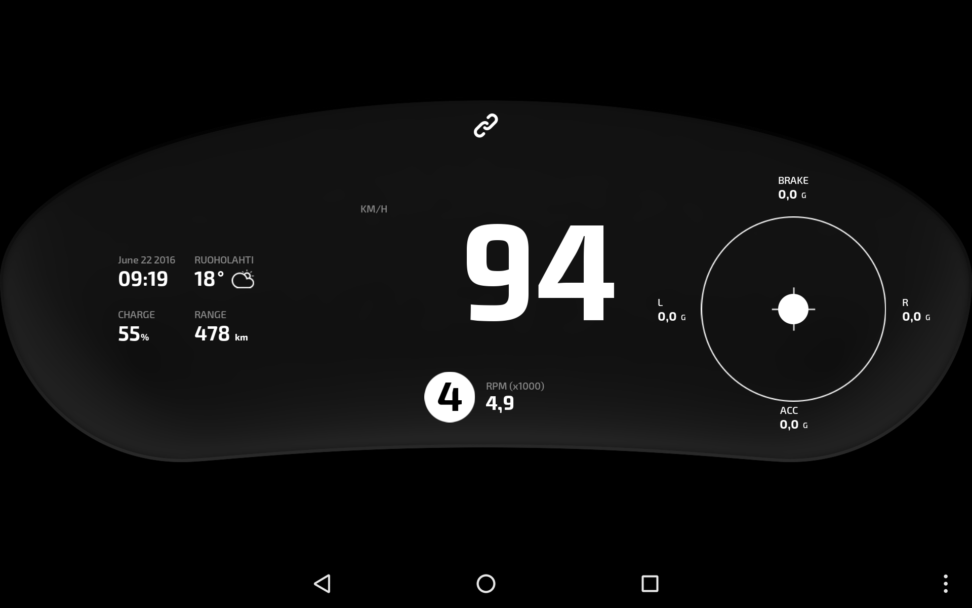 If the accelerometer sensor is enabled, the right panel shows the G-Meter as its contents.