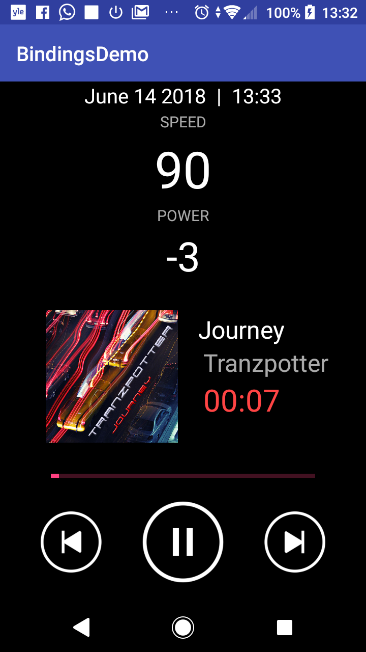Bind Kanzi Connect service data elements to Android UI elements in a similar way you can bind service data elements to Kanzi UI elements.