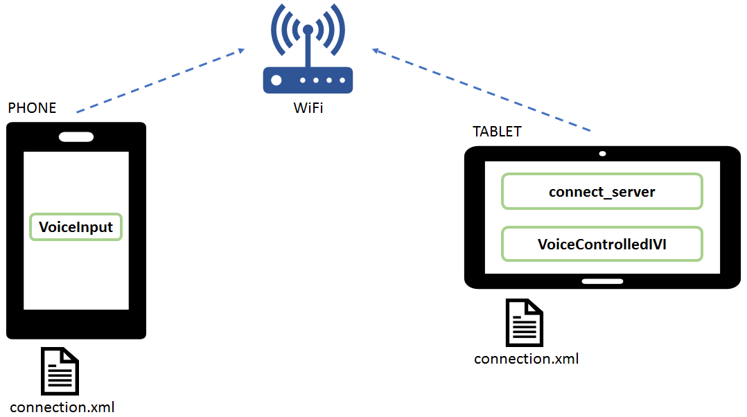 VoiceControlledIVI and Kanzi Connect Server are installed to an Android tablet.