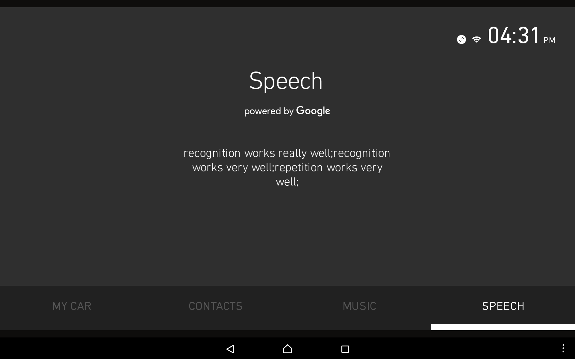 When the speech tab is active the raw data returned by the Google speech recognition service is printed to the screen. It usually provides multiple suggestions.