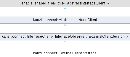Public Member Functions inherited from kanzi::connect::InterfaceClient< InterfaceObserver, ExternalClientSession > | |