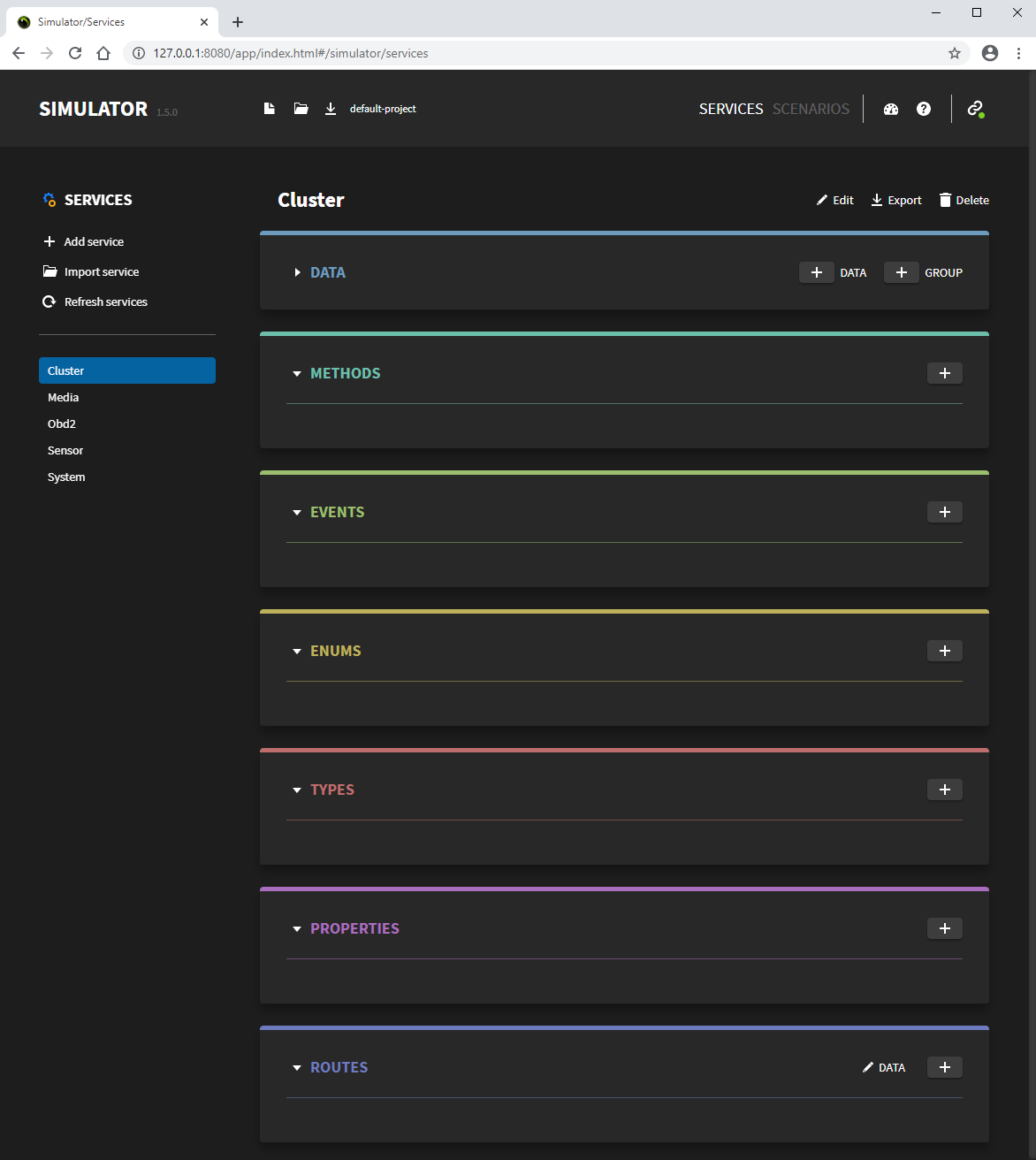 Updated the Simulator service editing and simulation tool. You can now extend existing services on the fly. See Kanzi Connect Simulator.