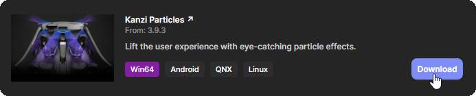 Kanzi Hub downloads and installs Kanzi Particles to the